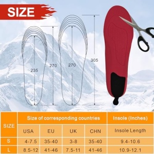 【Free Size Adjustment】You can easily cut the heated insoles to fit any size and shoe. These heated insoles are available in 2 different models for different sizes. Size S(35-40); Size L (41-46). You can contact us by email and we will respond within 24 hours.