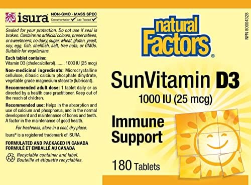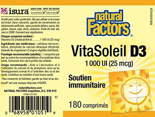 Home Health & Personal Care Vitamins Others Vitamins Natural Factors – Vitamin D3 1000 IU, Supports Healthy Bones, 180 Tablets