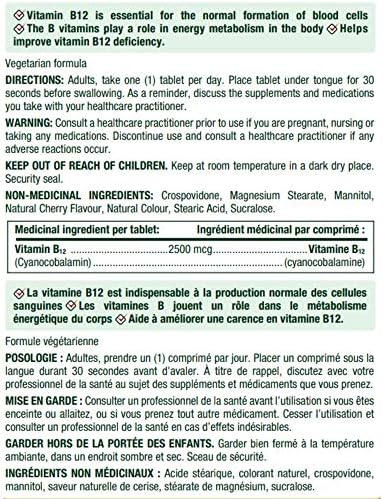 This unique Quick Dissolve B-12 provides an easy and delicious way to deliver essential B-12. Place the quick dissolve tablet under your tongue for 30 seconds before swallowing and you’ll enjoy the delicious natural cherry flavour and the benefits of Vitamin B-12!