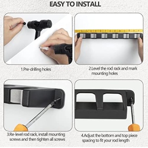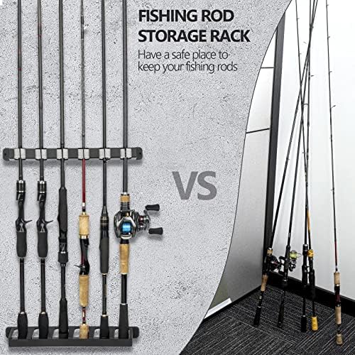 STORE 6/8 RODS: The spacing of the wall mount fishing rod can be adjusted to fit your rod length. Allow the reels to be staggered at different heights, which can store up to 6/8 rods and reduce reel collisions. Use this rod holder to protect your fishing rods from tangling lines. The vertical rod holder base grip keeps the rod away from the ground, which can prevent the rod corrosion.